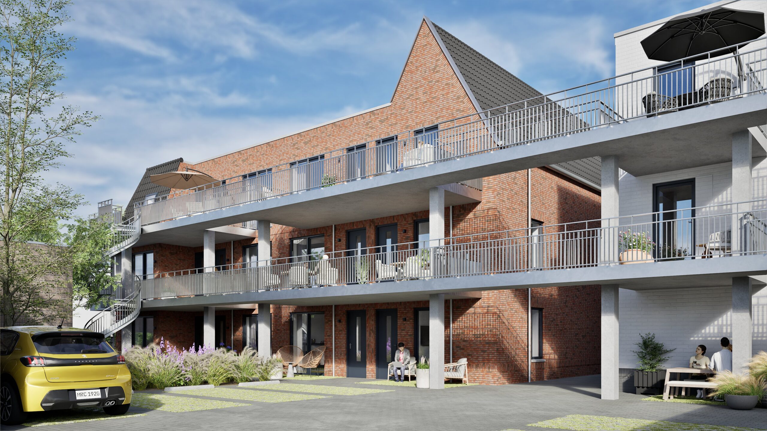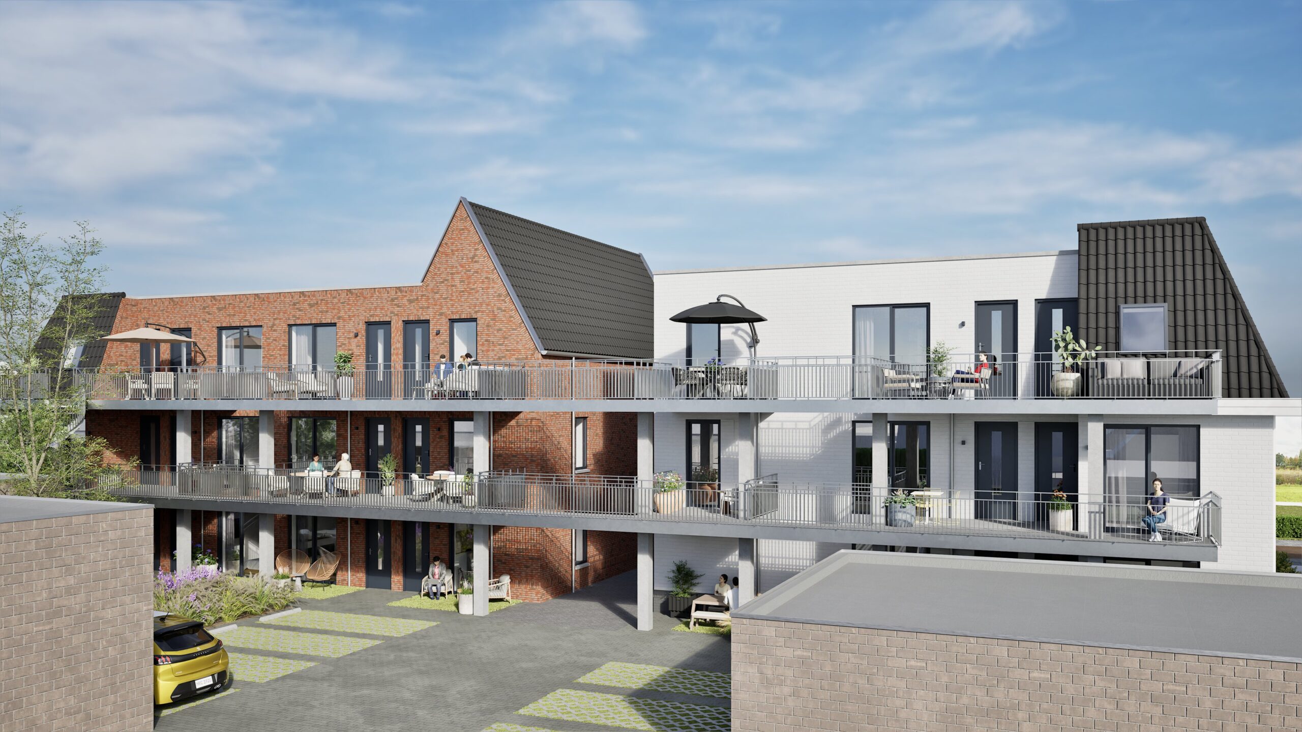 Praktisch gemak is er ook: voor elk appartement is er een parkeerplaats op het eigen achter terrein. Fietsen staan veilig in de gezamenlijke stalling. Het groen op de binnenplaats geeft ruimte om elkaar te ontmoeten of juist even rustig buiten te zijn. Dankzij de erkers, dakkapellen, brede dak overstekken en grote raampartijen ademt ieder appartement licht, ruimte en comfort.