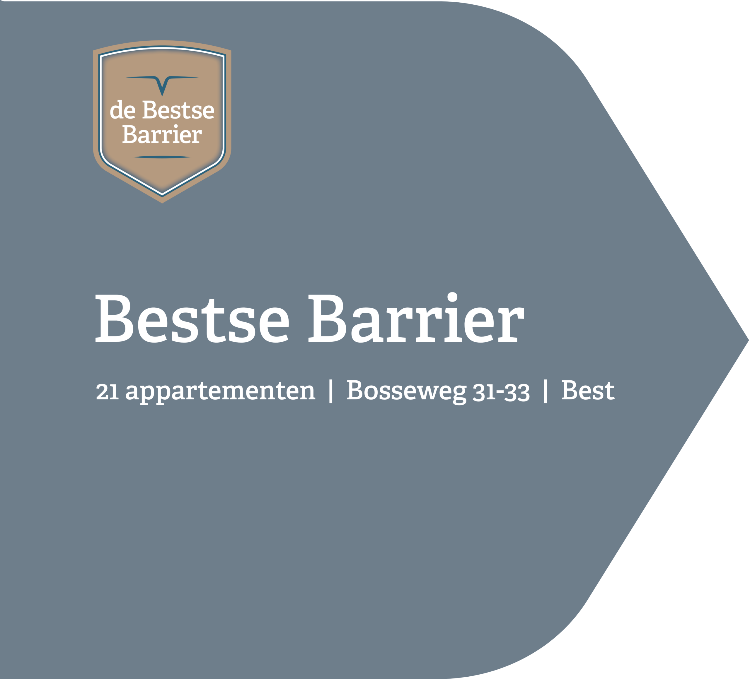 Aan De Bosseweg 31 en 33 op de locatie van de voormalige antiekwinkel “Isphording” komen 21 gelijkvloerse appartementen samen in twee gebouwen. Verbonden door een pergola en slanke brug. Een entree die meteen iets bijzonders uitstraalt. Achter de gevels ontdek je zes woningtypen van 42 tot 67 m², elk met een mooie living, een slaapkamer aan de galerijzijde, een badkamer met apart toilet en een ruime berging. 6 appartementen hebben de luxe van een 2e slaapkamer. Door de buitenruimte aan de achterzijde van de Bestse Barrier te leggen profiteer je maximaal van de zon en rust op je balkon of tuintje.